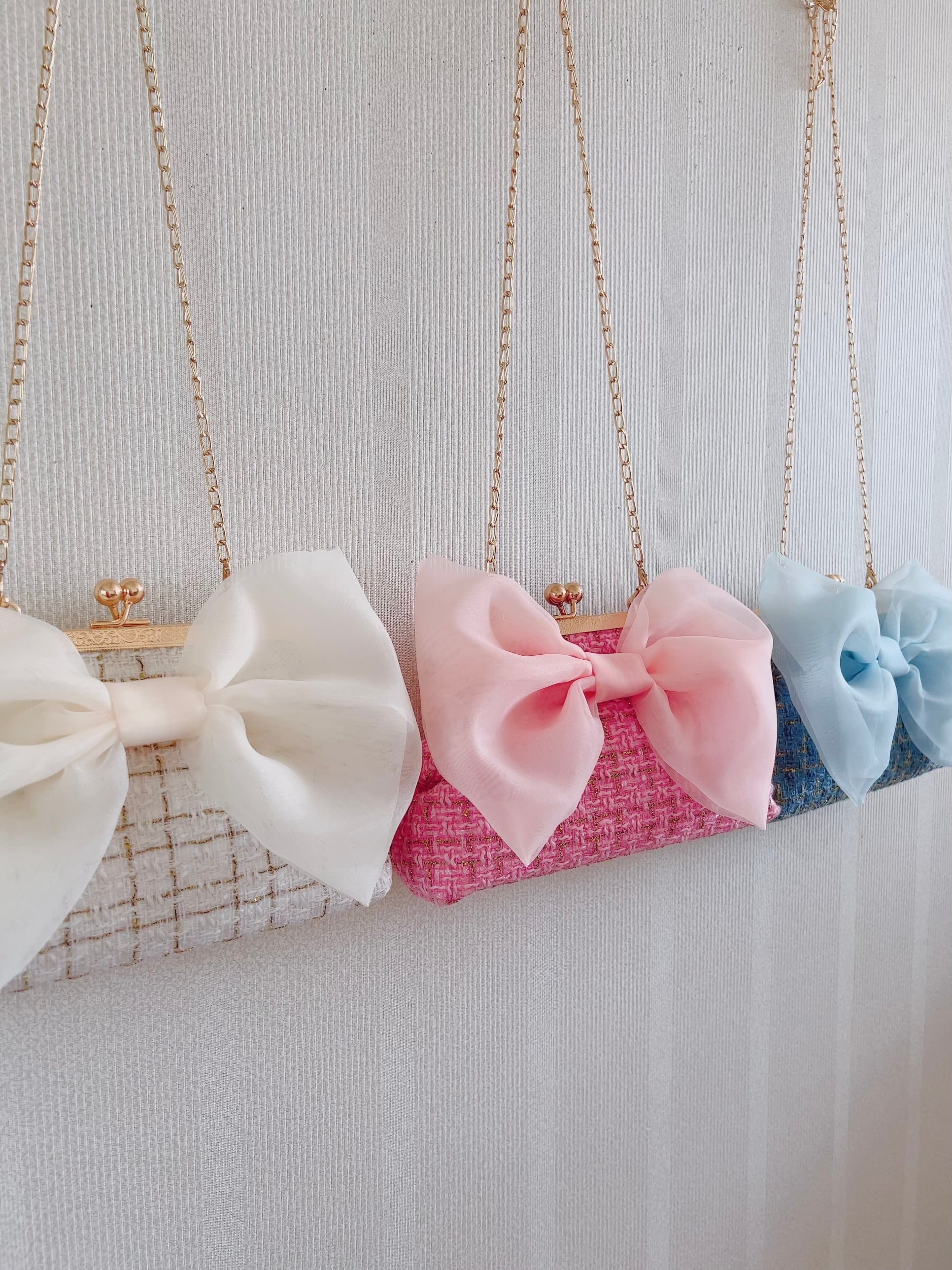 ピンク・アイボリー・パステルブルーの3カラーからご予約時にポーチ本体のお色をご選択いただきます。