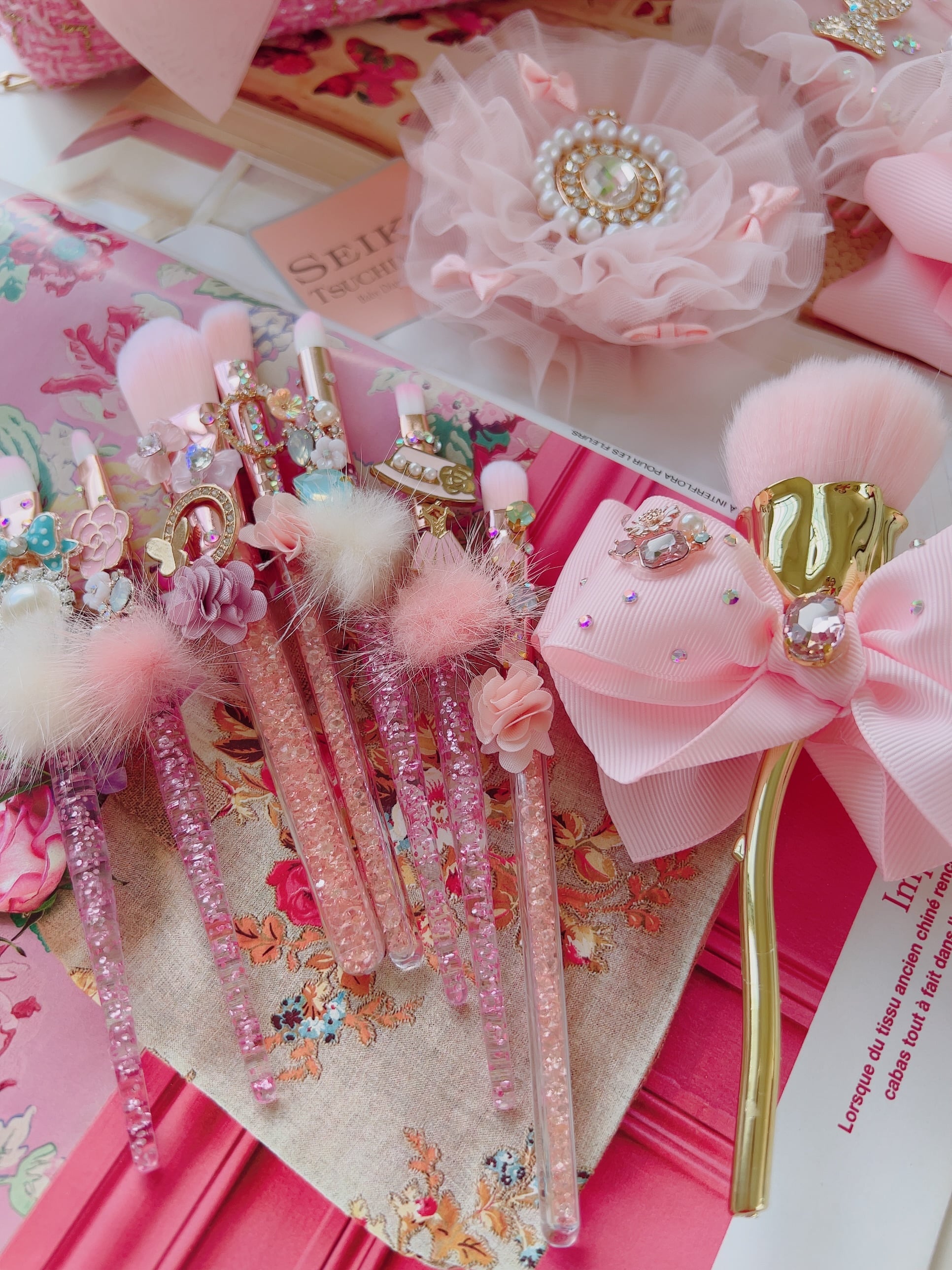 女の子なら飾っておくだけでも心が上がる可愛いビジューメイクブラシ。