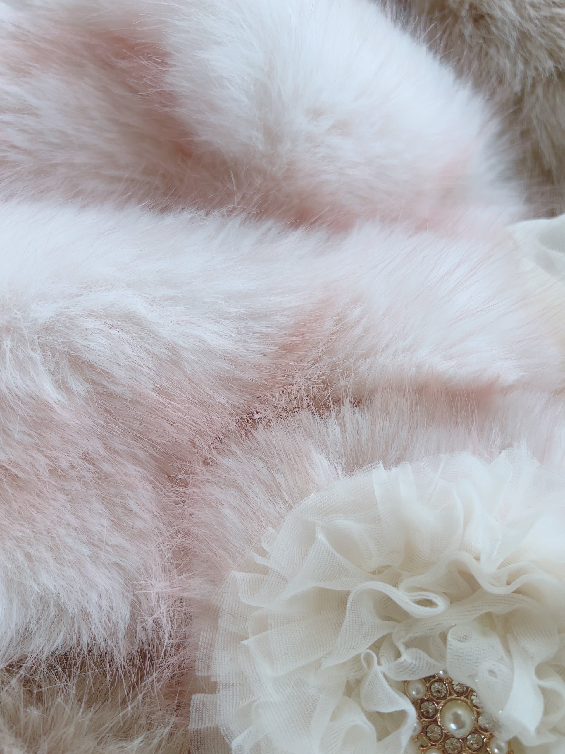 ふわふわ柔らくてとってもシルキーなミルキーピンクの長毛マフラーに