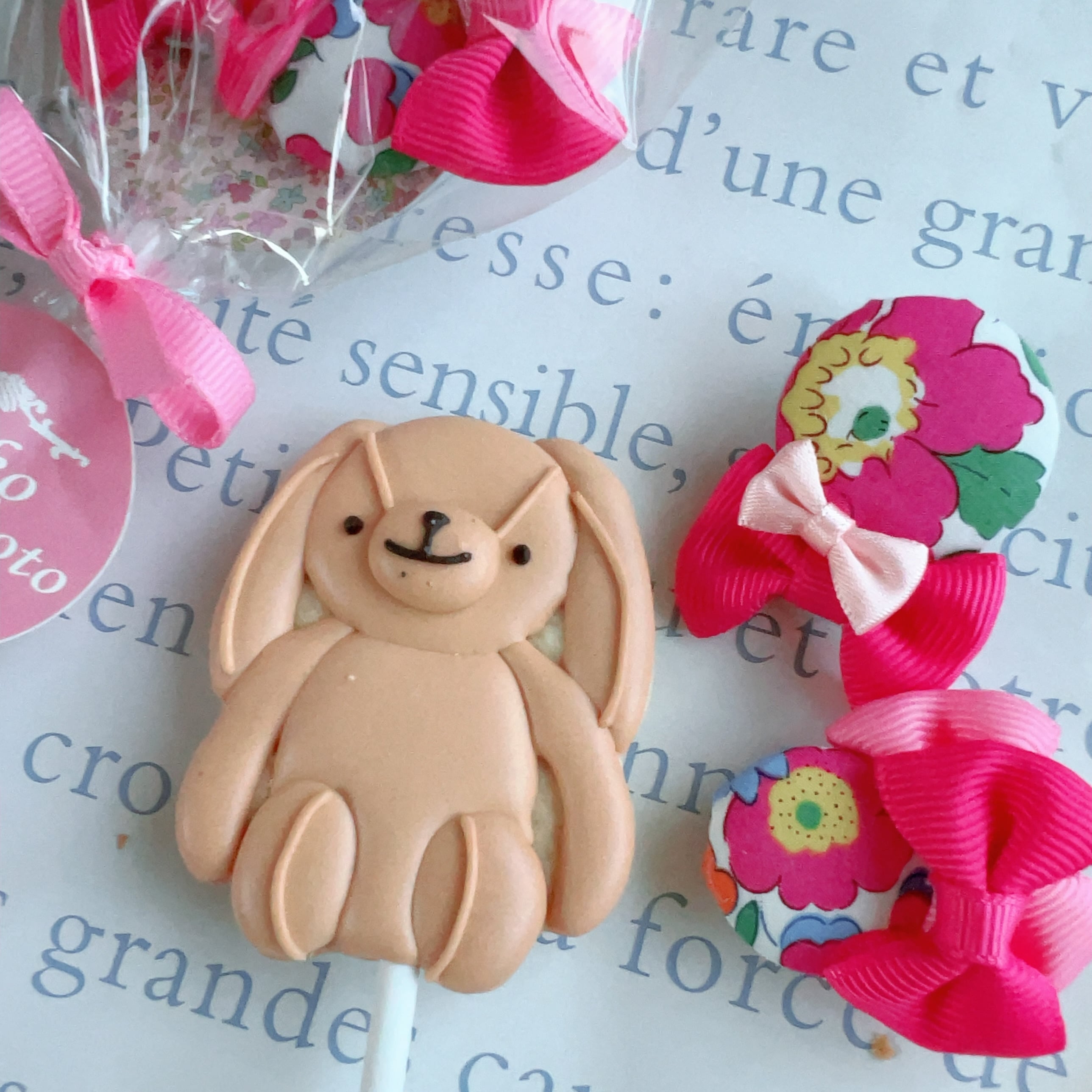 Seikoのアイコニックプロダクト「ロリポップヘアクリップ」とseikoのくまたんとうさぎたんがアイシングクッキーになってロリポップスタイルにしちゃったダブルSWEETプチギフト♪!