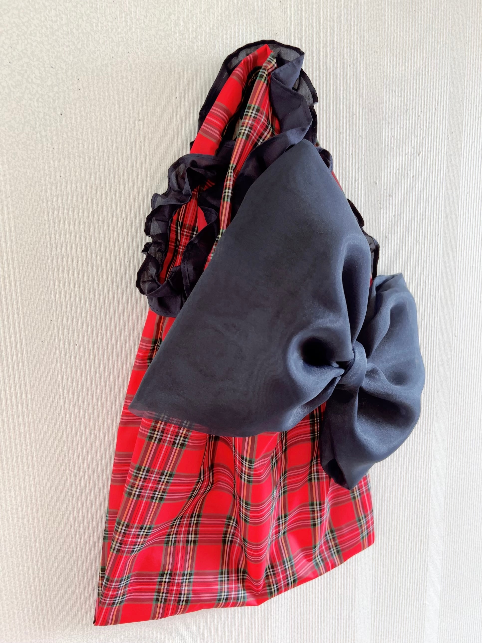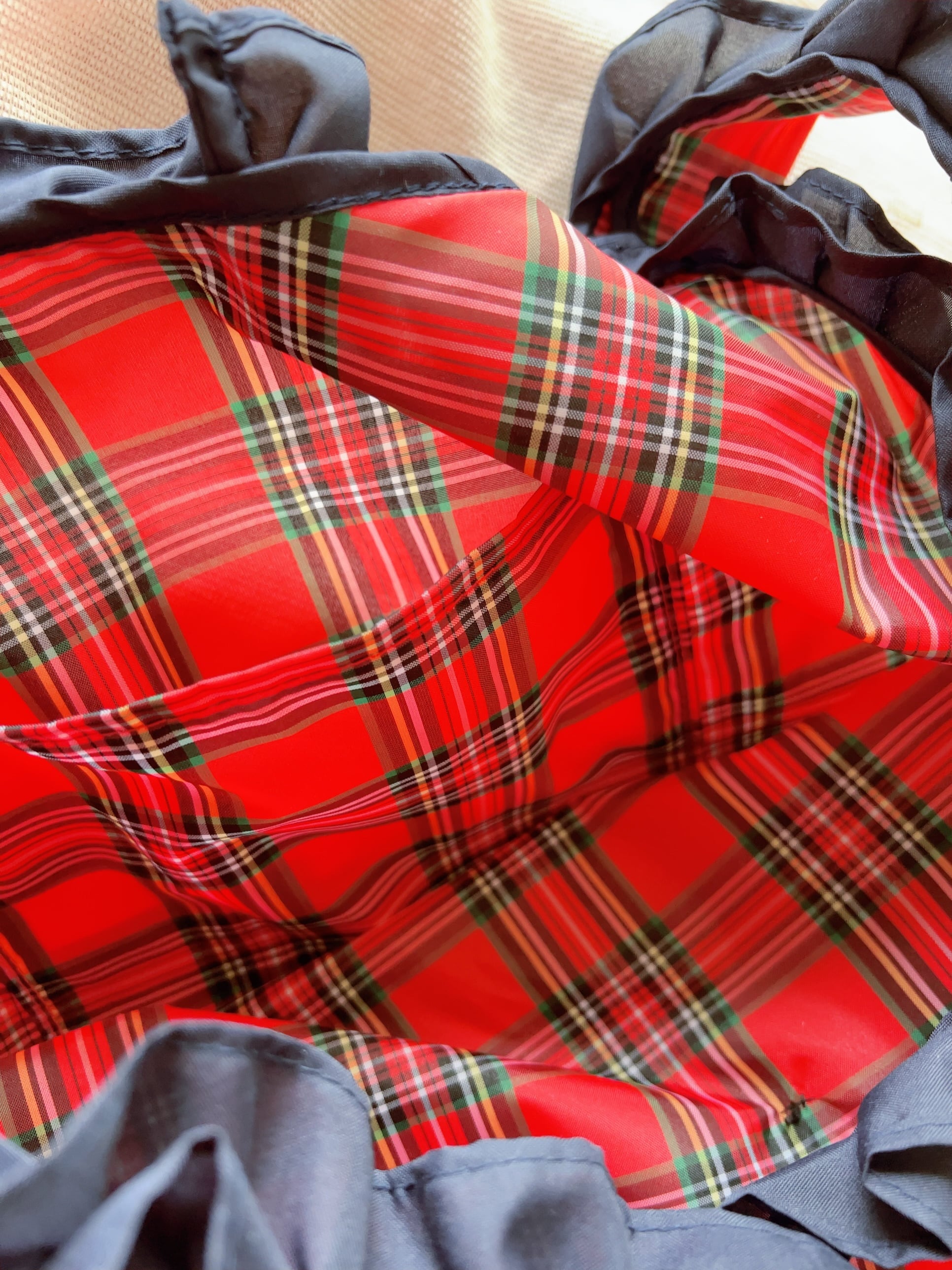 ナイロンタフタのタータンチェックで耐久力のあるバッグを縫製。