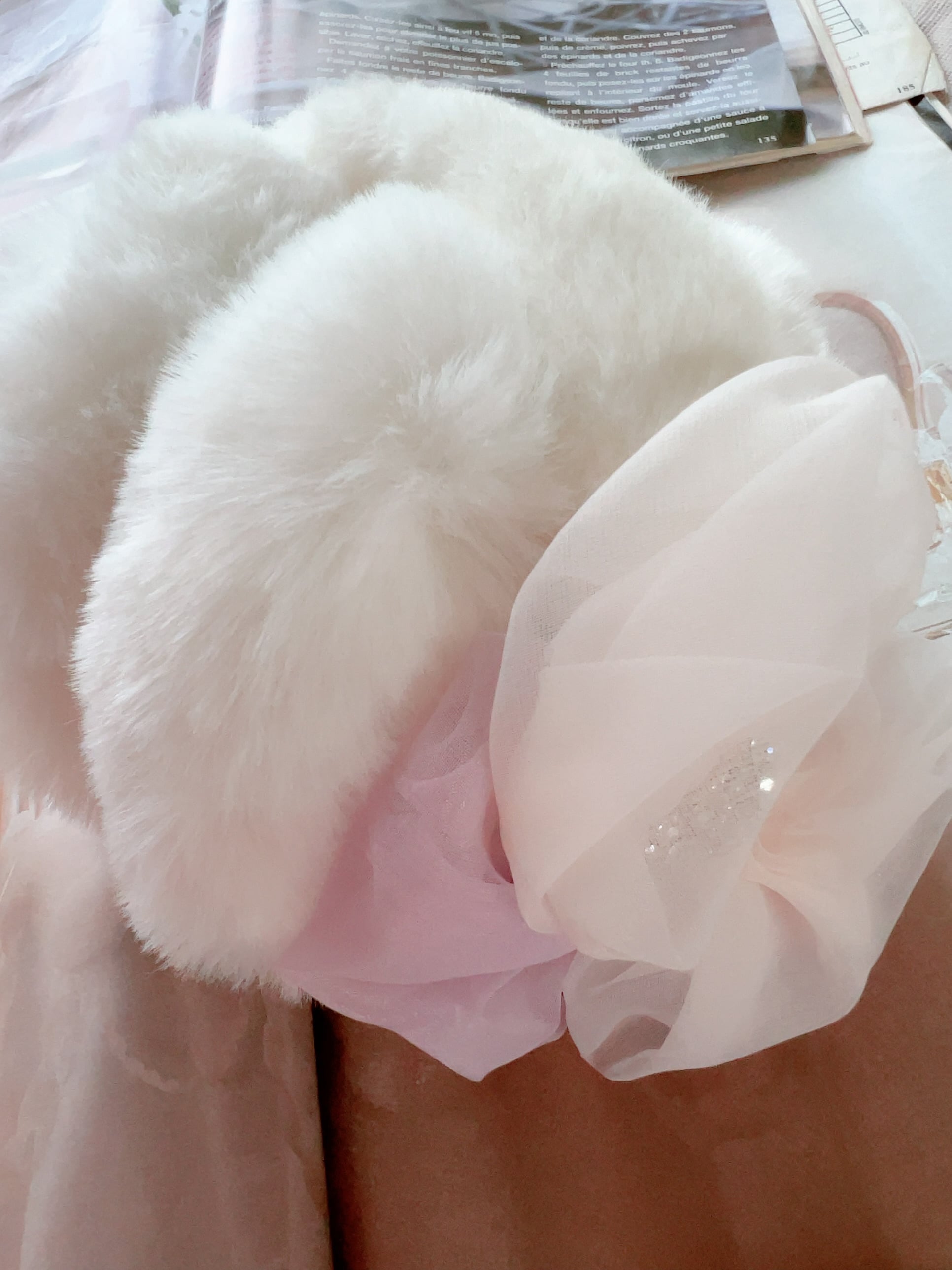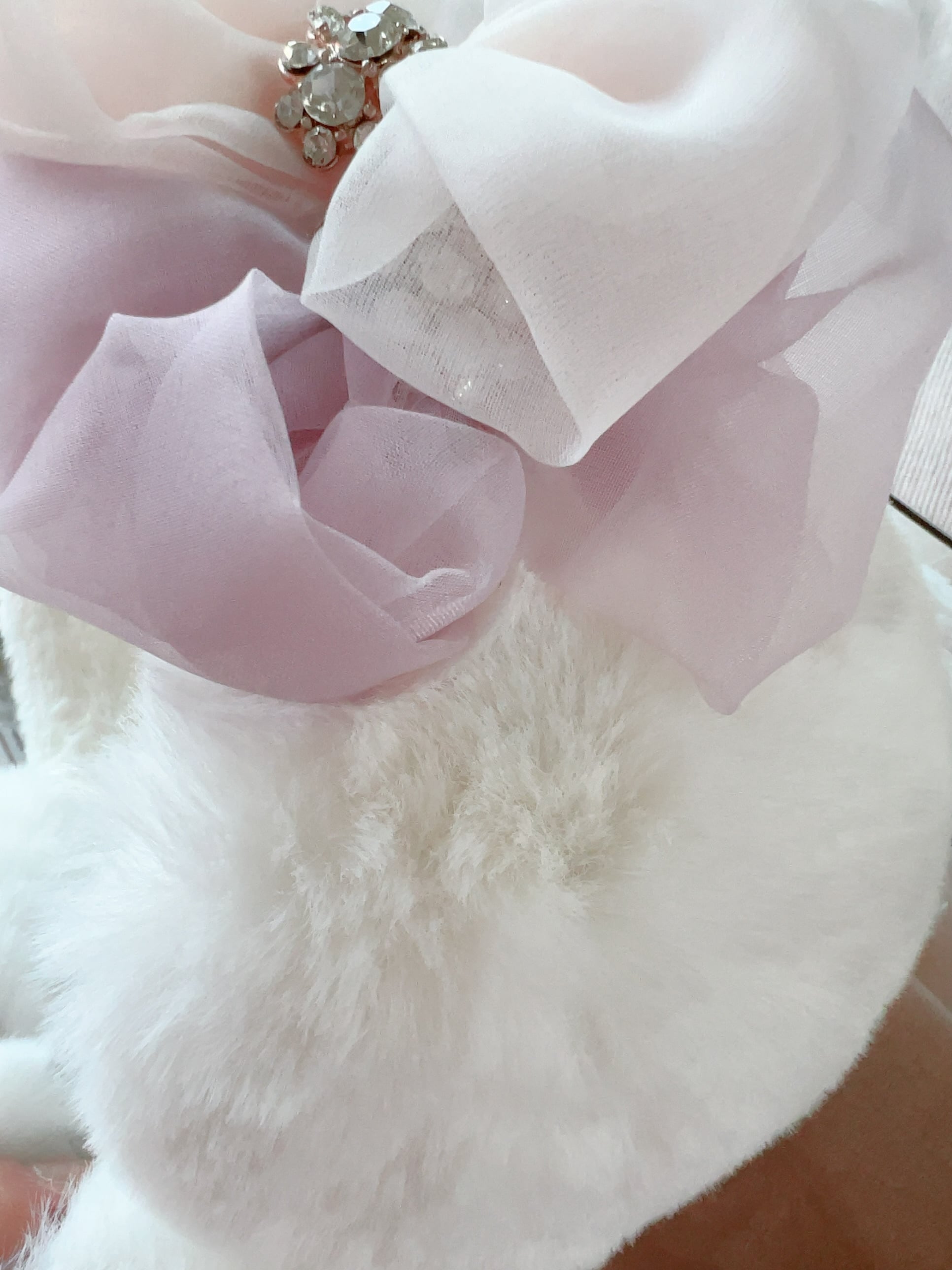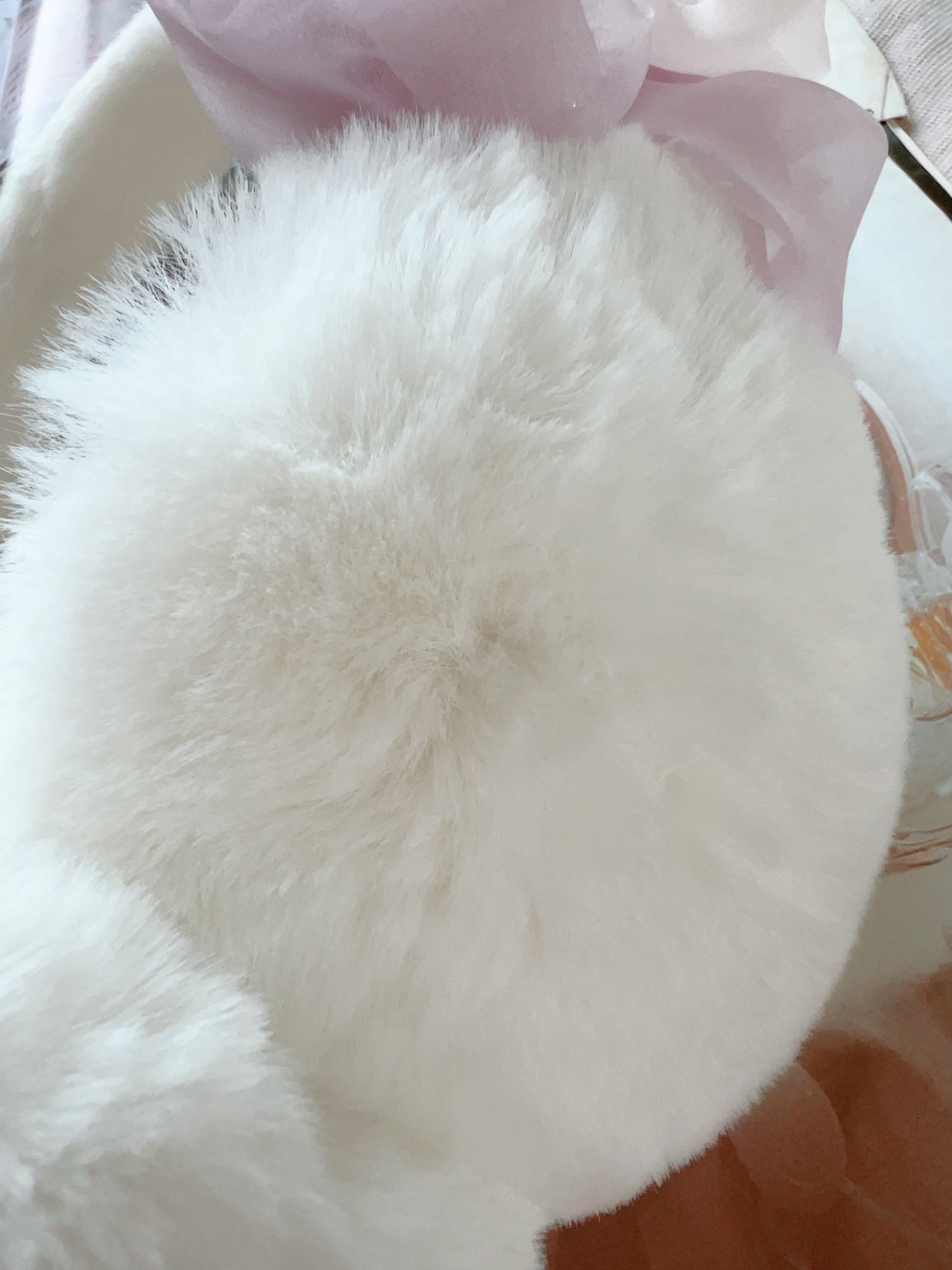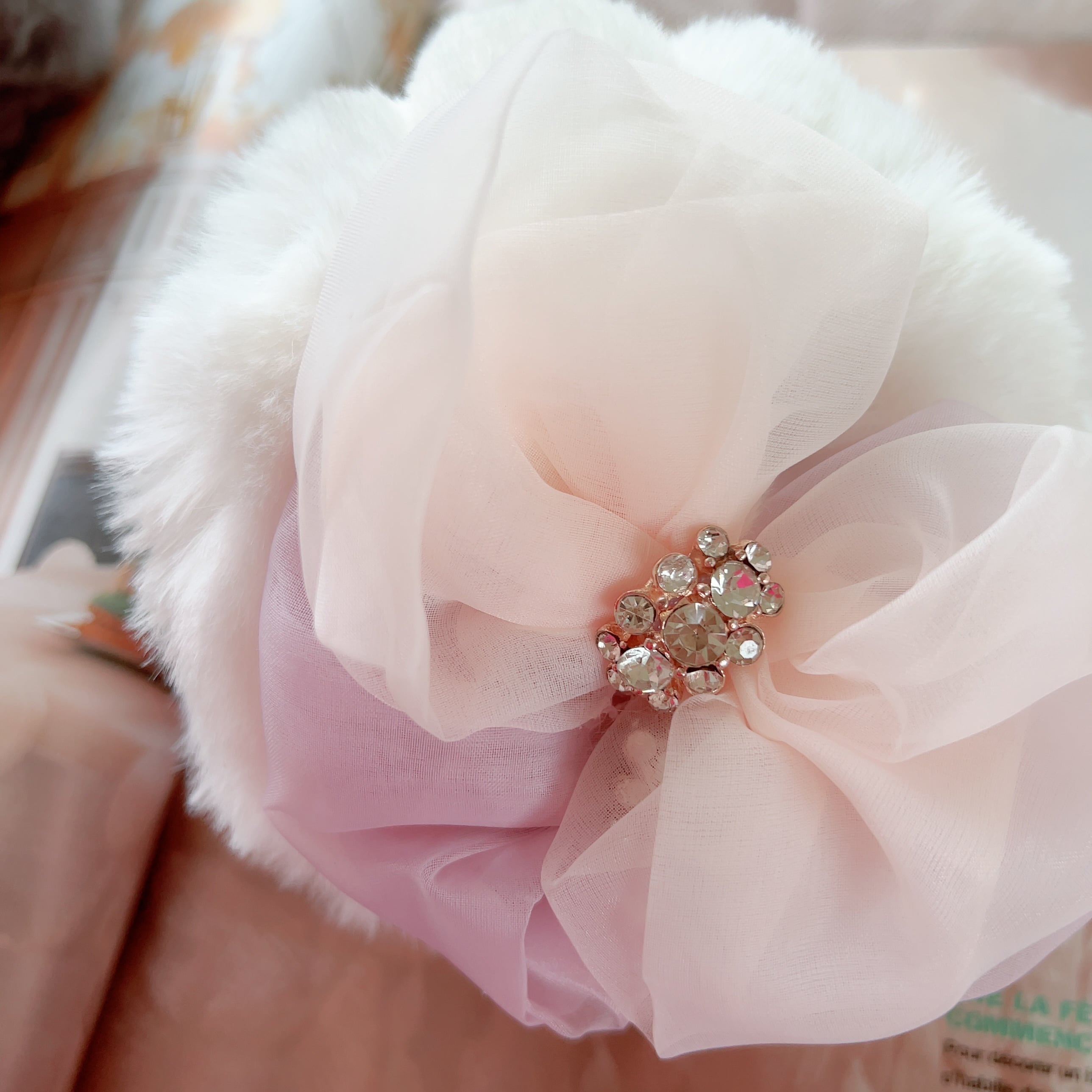 ○材質: イヤーマフ:エコファー ポリエステル100% リボン:ポリエステル100% ビジューボタン:合金