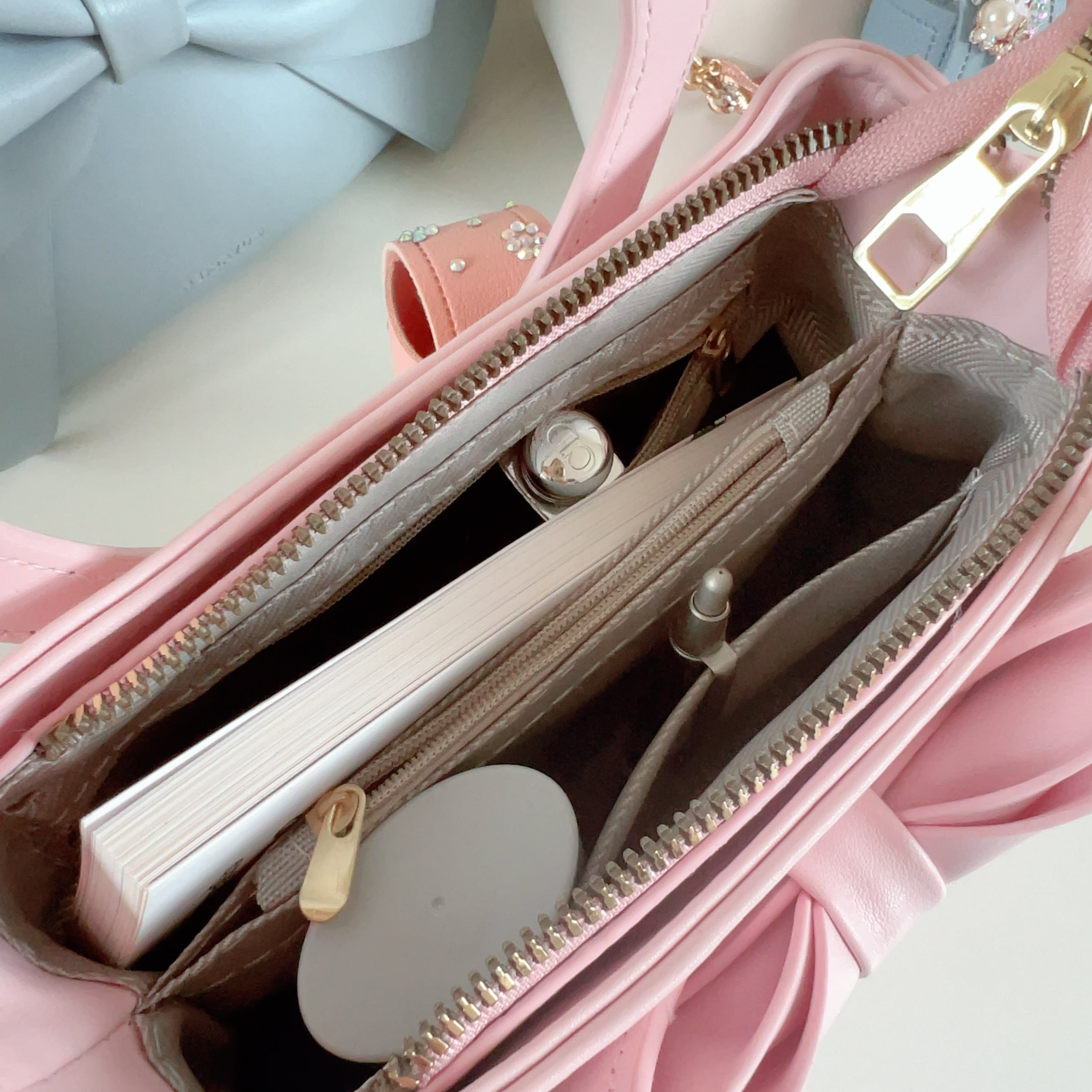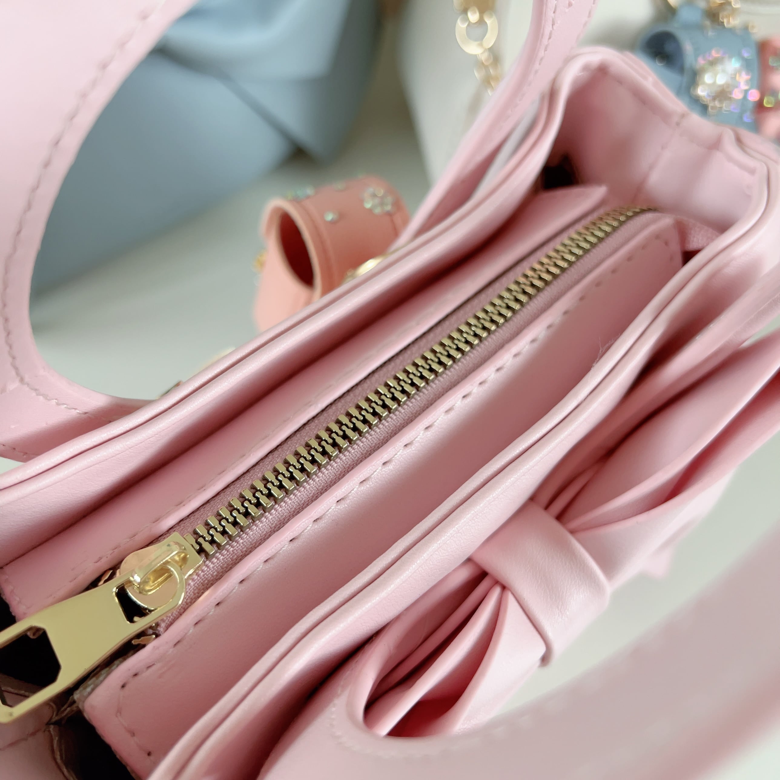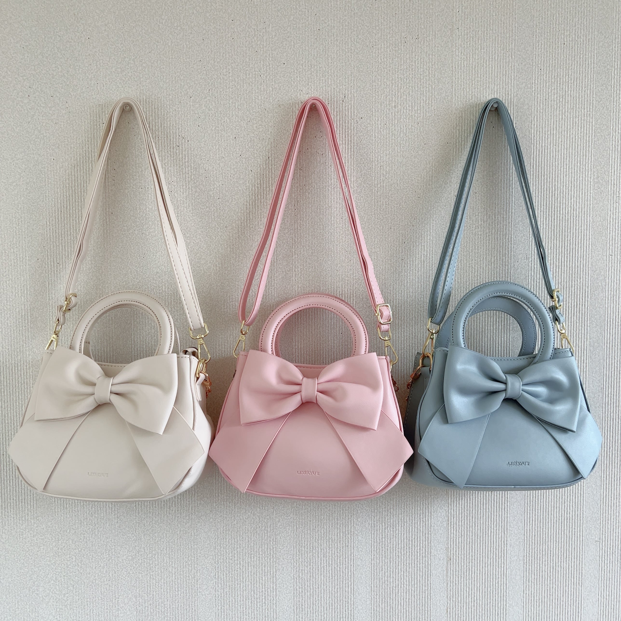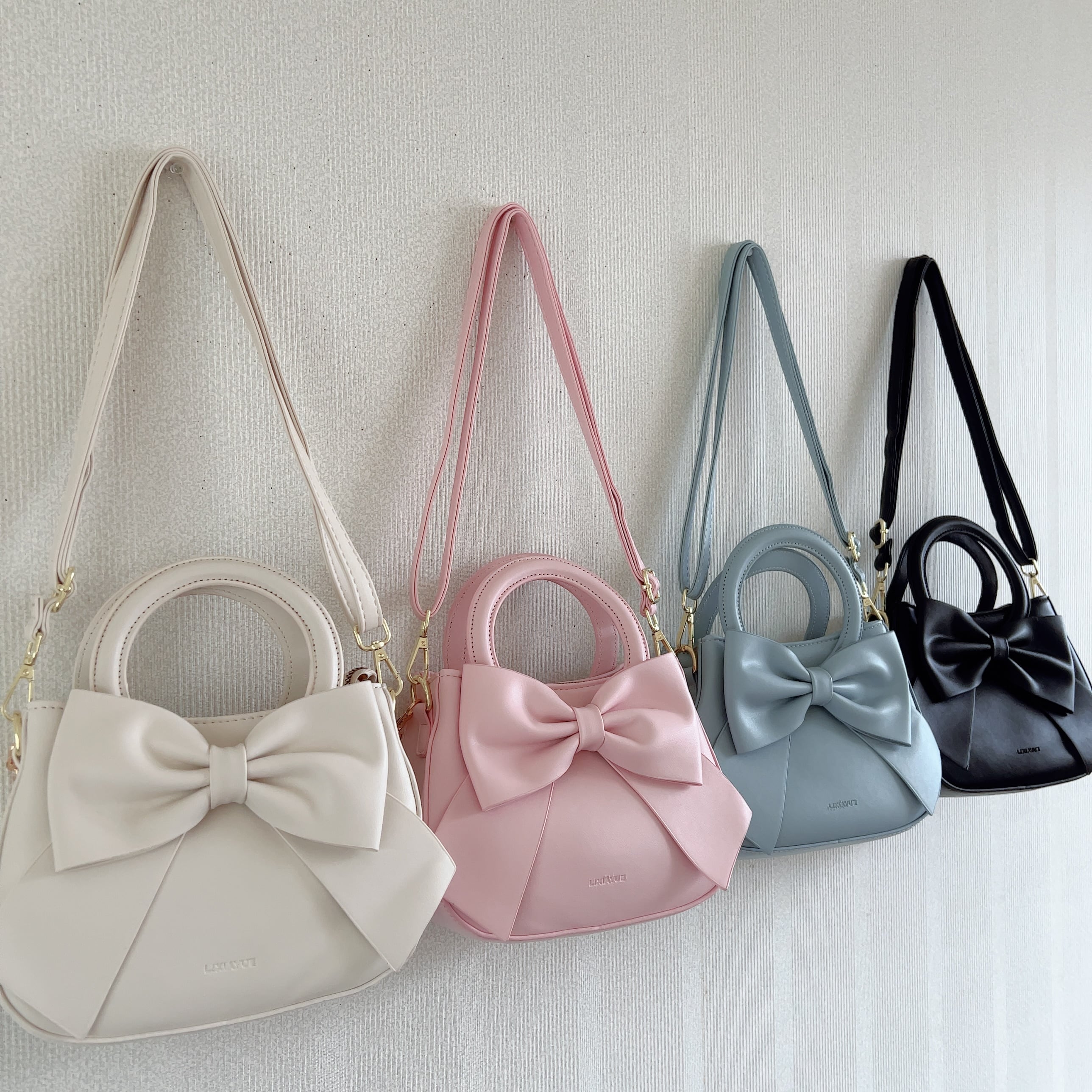 やわらかでマットな肌触りのレザーに大きなおリボンを乗せた2Wayショルダーバッグ。