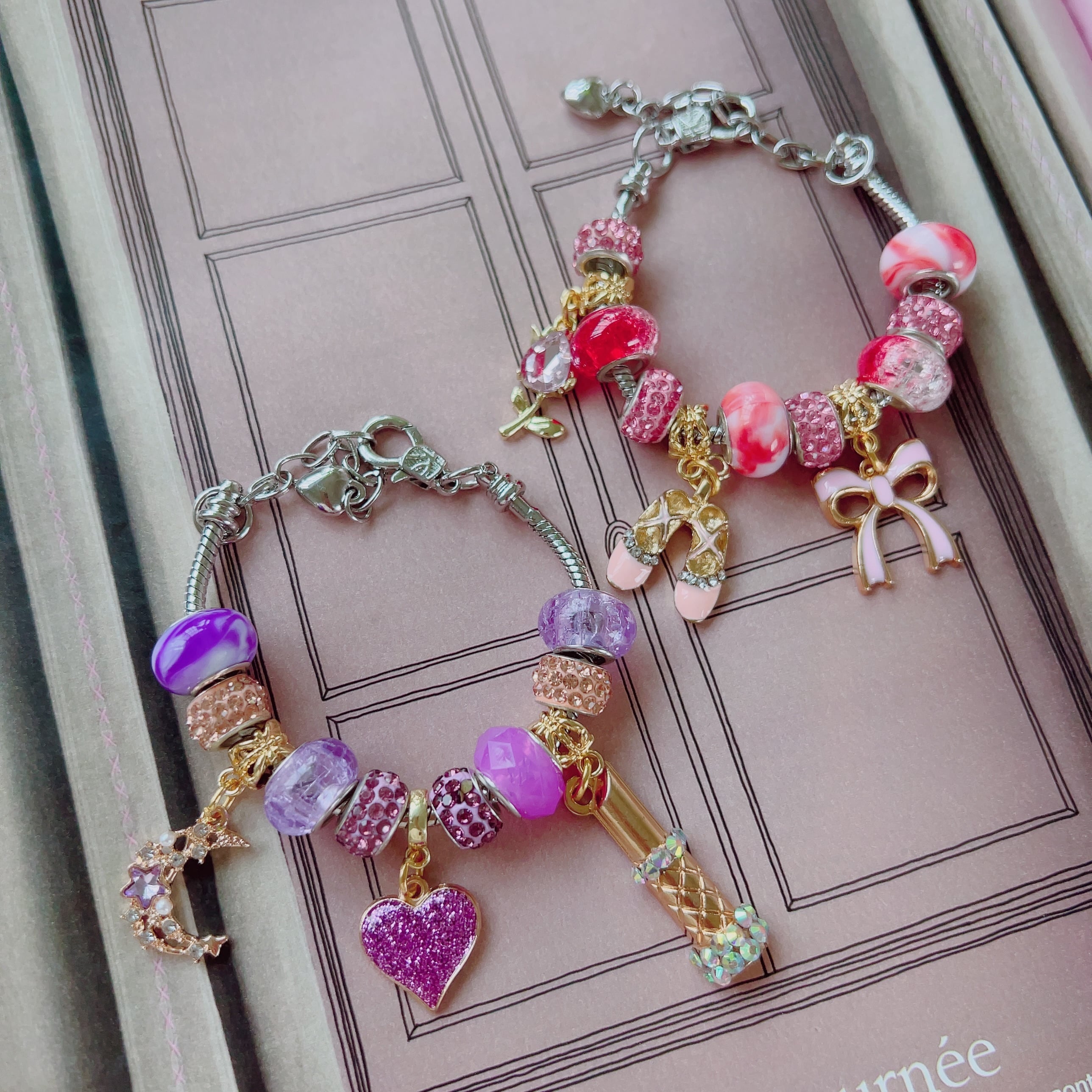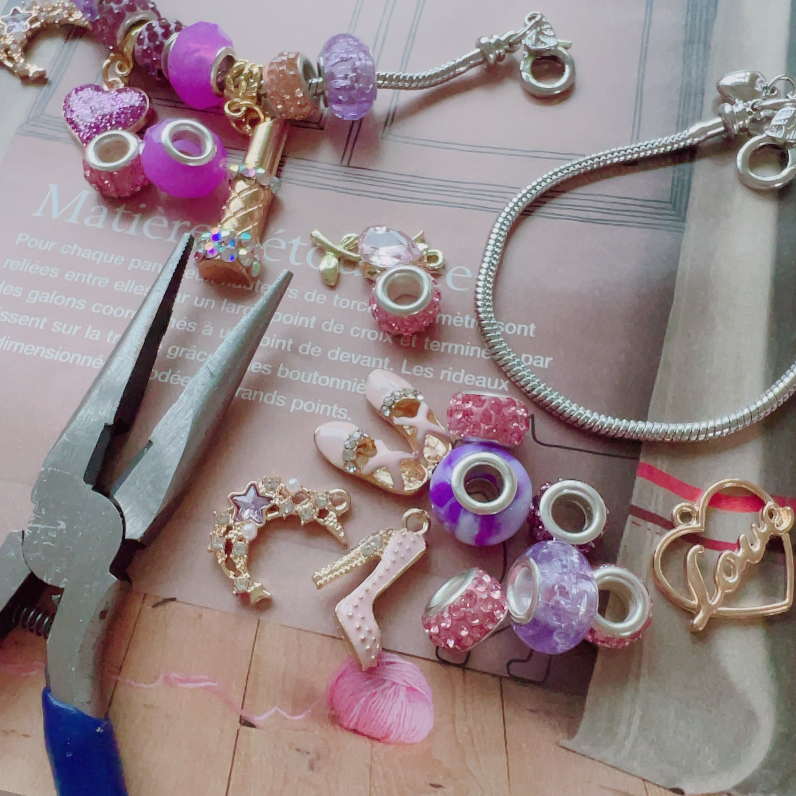 大人可愛いたくさんのヨーロピアンビーズの中からお好きなビーズと可愛いチャームをお選びいただきます。