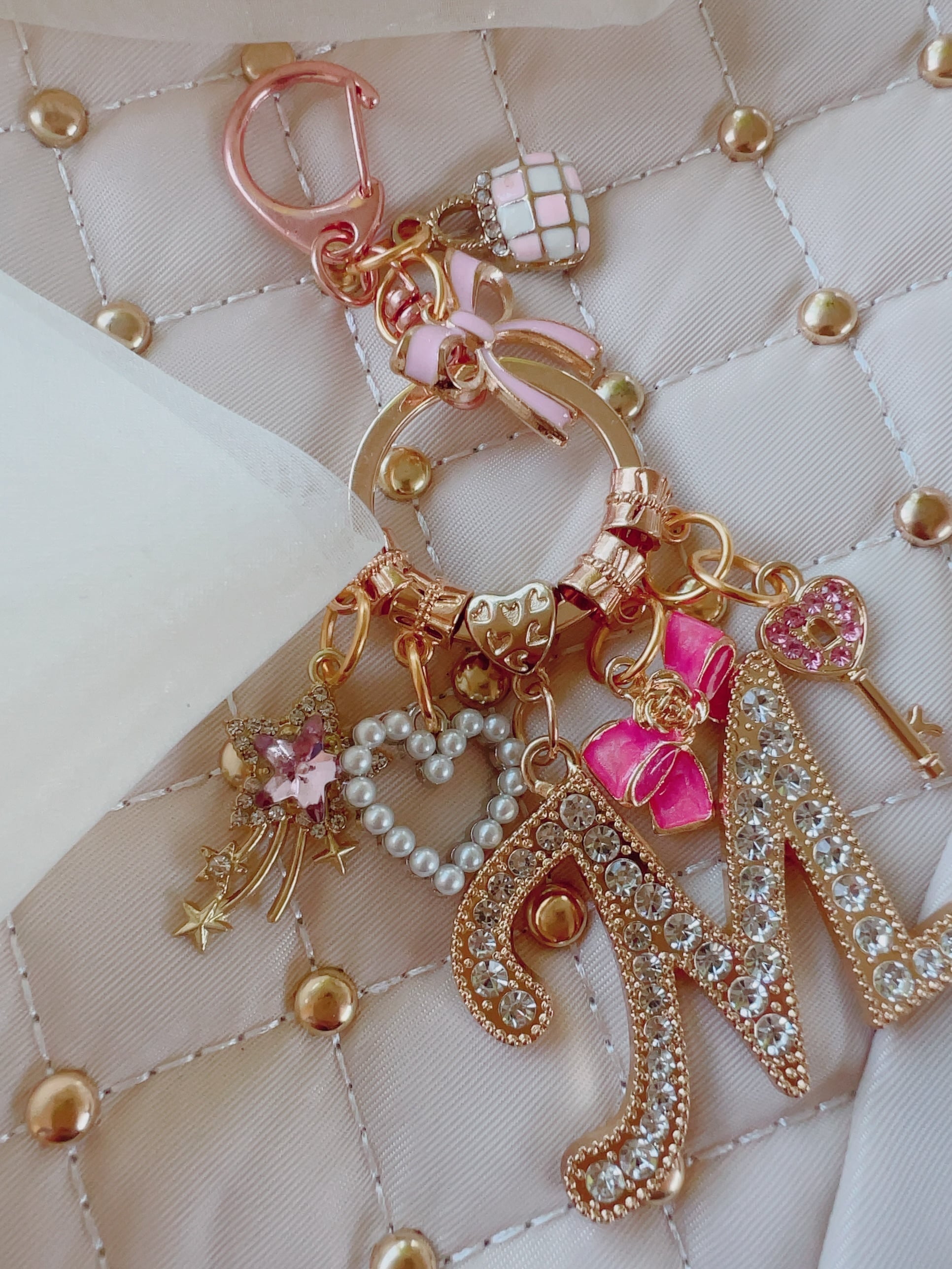 2つのチャームを取り付けて、ラインストーンできらめきを加えちゃうのも最高に素敵です♪