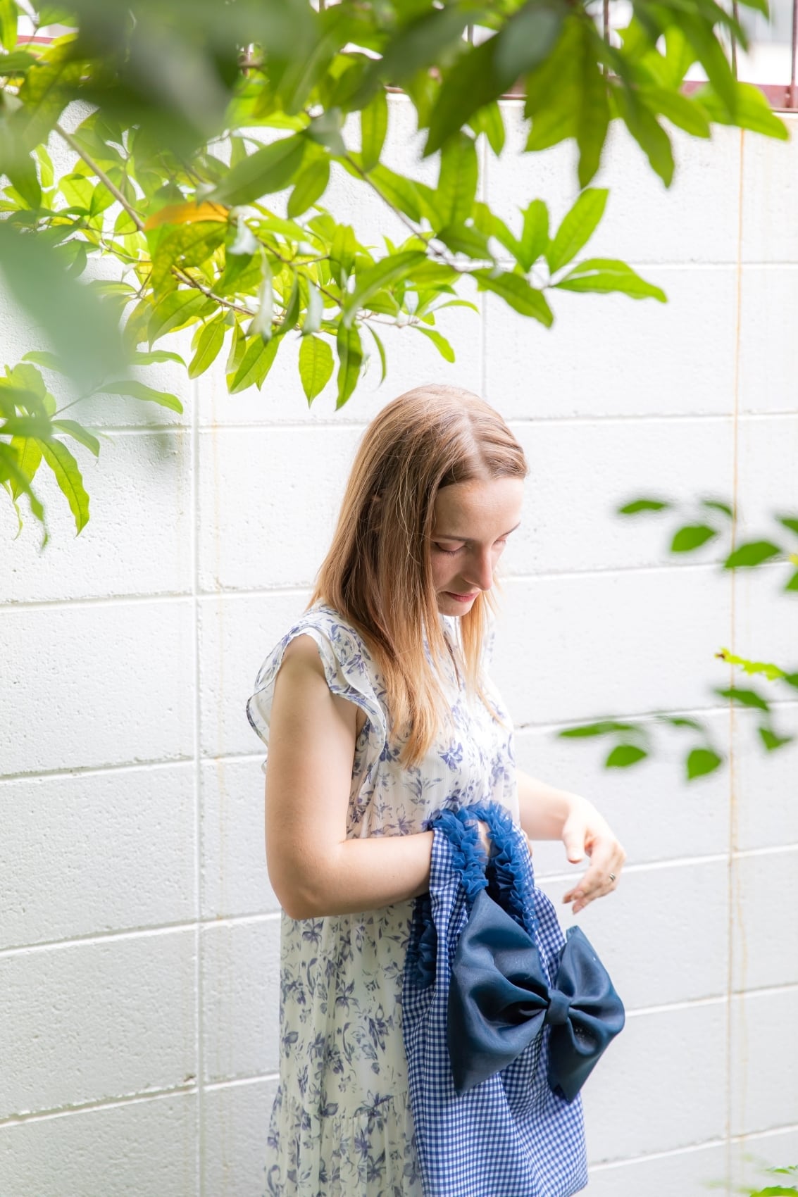 バッグ本体の首元や脇下にはタフタを縫製したハリ感のあるフリルをプラス