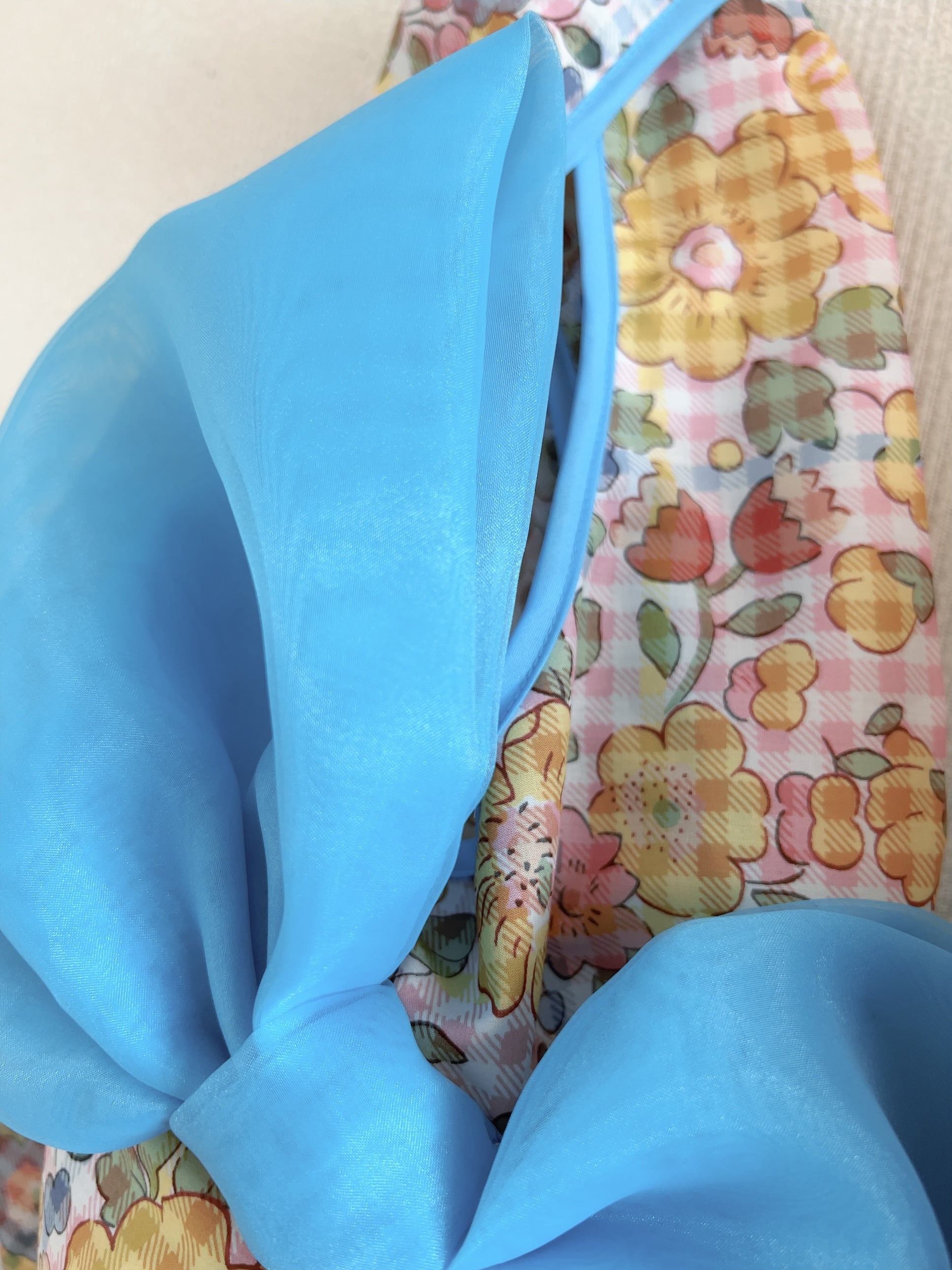 ロイヤルブルーのリボンと合わせることで、とても爽やかなで可愛くてパッと目をひくリボンバッグに仕上がりました。