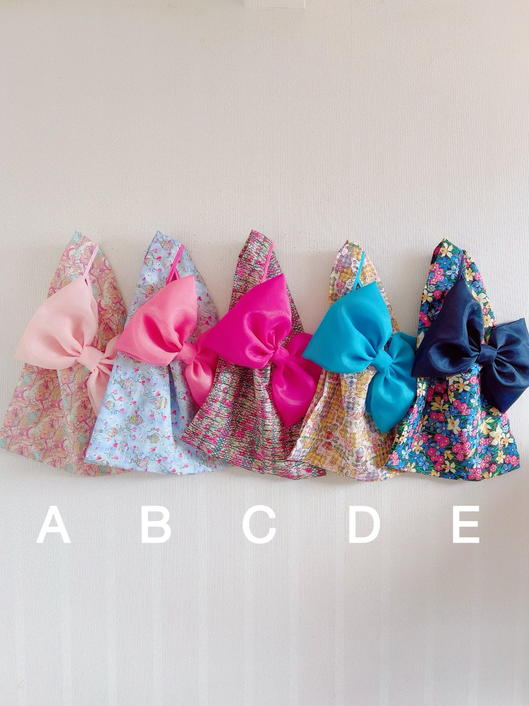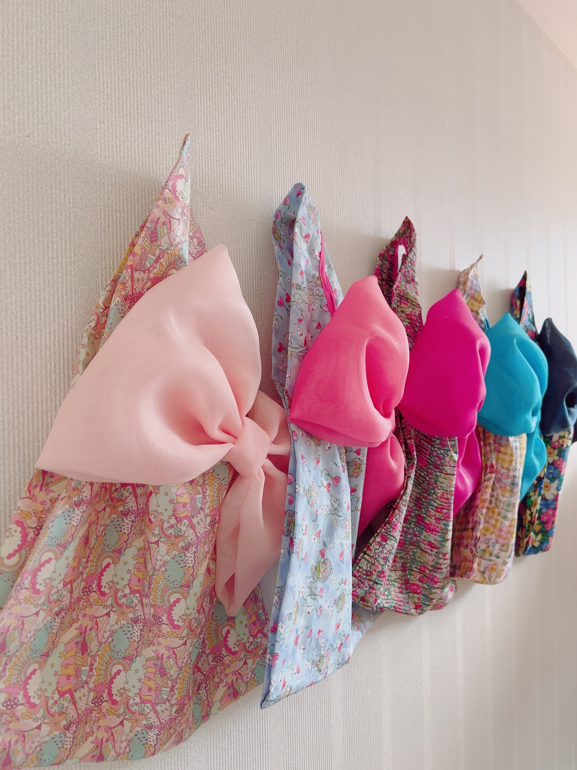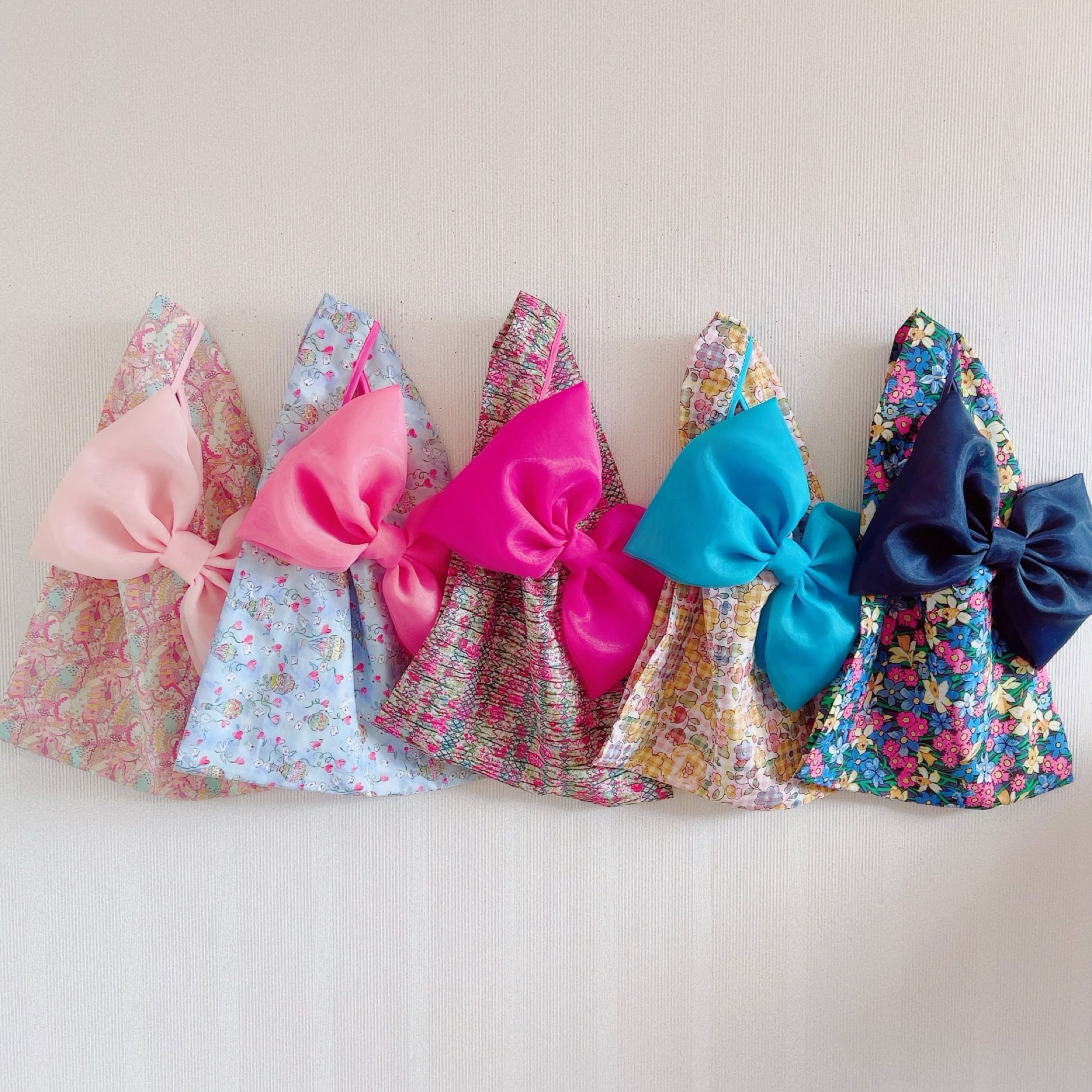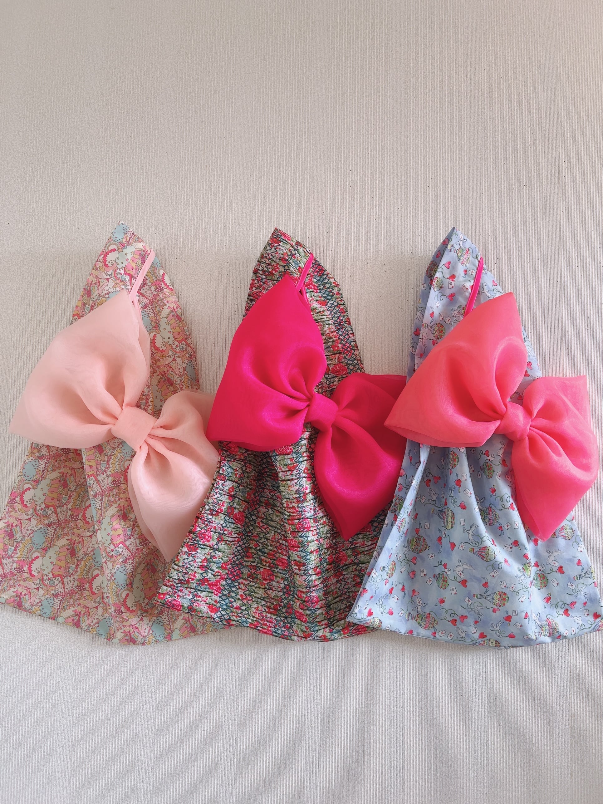以下の5種類のLiberty生地で大人気のリボンバッグをおつくりいたしました。