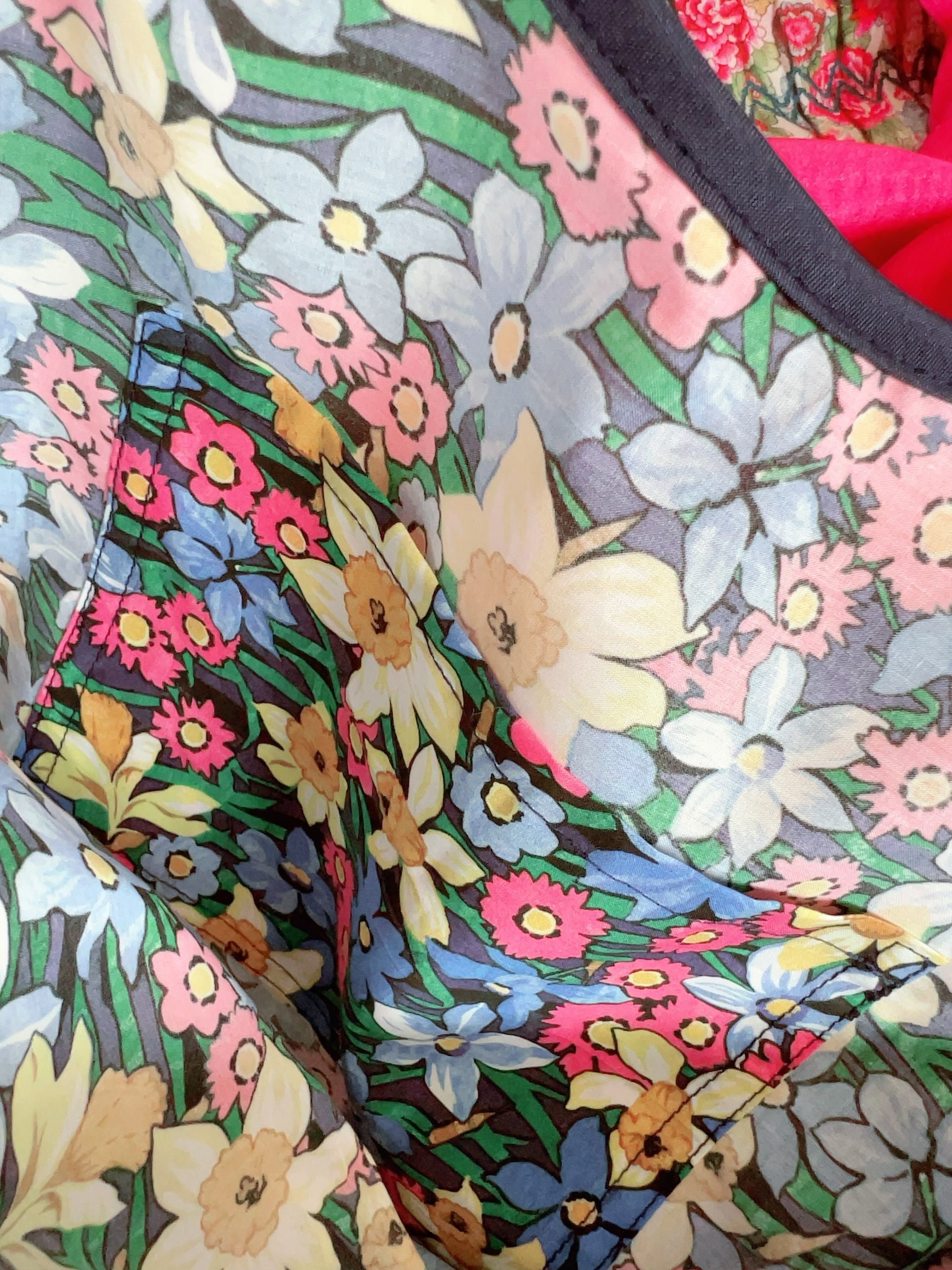 オリジナルは1966年にリバティの先駆的な「ロータス」コレクションの一部として、1960年代のフラワーパワー運動の精神を祝いデザインされました。この賑やかな草原の模様は、デイジーやスイセンの鮮やかな色合いで構成されています。