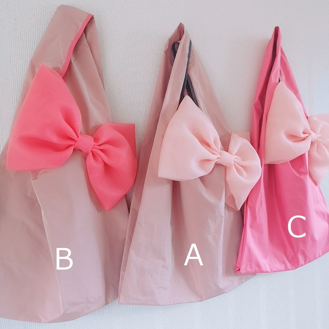 3種類のピンクカラーのショッピングバッグをご用意いたしました。